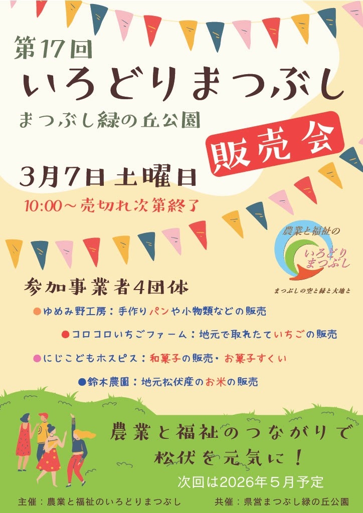 3月7日 土曜日 第17回いろどりまつぶし販売会